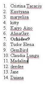Felicitari! Astept sa ma contactezi pe adresa anotherside_dorina@yahoo.com.