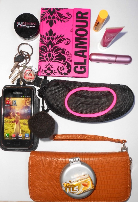 si eu am mereu la mine tocul cu ochelari de soare… si aproape tot ce mai ai u pe acolo.. π .. chei.. portofel.. gloss… sticla de apa… carnetel…