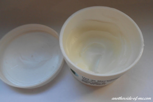 E alb, are o consistenta groasa, ca de vaselina, insa nu e foarte gras, se absoarbe destul de repede in piele, mult mai usor ca untul de cacao sau cel de cocos, spre exemplu.