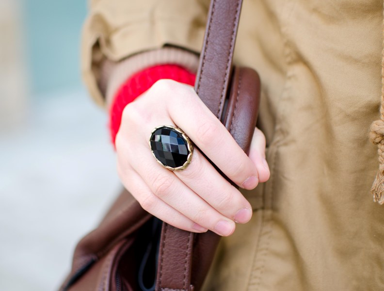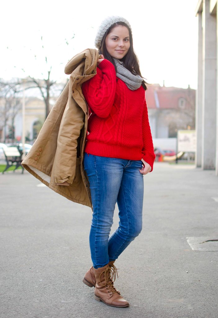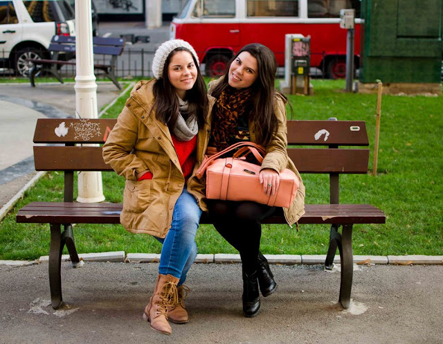 Cristina: parka: here; sweater: here; jeans: Stradivarius; boots: Benvenuti; ring: here; beret: New Look, infinity scarf: H and M; bag: no brand