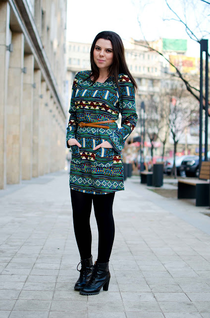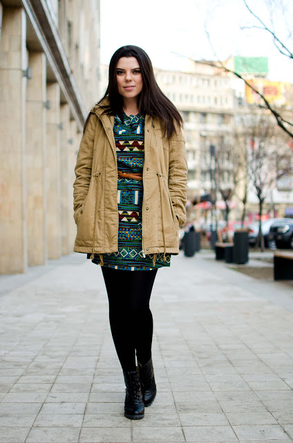 Ce frumoasa e rochia cu imprimeu aztec, delicioasa! Si e out of stock πŸ™ Draguta colaborarea, eu in perioada asta port parka aproape zilnic, e cea mai calduroasa haina din garderoba mea.