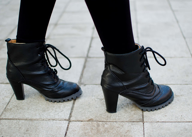 You can create a casual outfit or an elegant one with the same parka. For example, look at our outfits: almost the same parka, but  in one outfit combined with a dress and my favorite heels right now and in the other with jeans and casual laced boots.