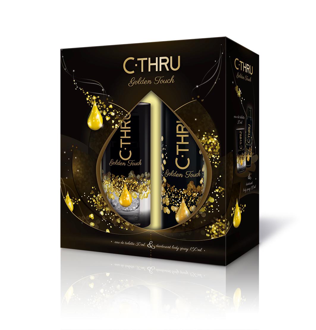 Pachetul C-THRU Golden Touch– conceput pentru femeia sofisticata si indragostita de reflexele aurii, cu note de varf de bergamota, portocale rosii si coacaze, note de mijloc de piersica, iasomia si pruna si note de baza precum moscul, lemnul de santal si patchouli.