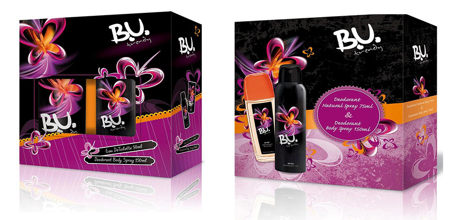 Pachetele B.U. Trendy- pentru cei cu incredere in ei si care cunosc puterea unui zambet. Accentele de mandarina si mar evidentiază spiritul tanar si dinamic al nonconformistelor ce se bucura de fiecare clipa. Latura artistica a acestora este evidentiata prin notele de mijloc, liliac si bujor, iar pasiunea pentru frumos se regaseste in clasica mireasma a trandafirului. Pachetele din gama B.U. Trendy sunt: