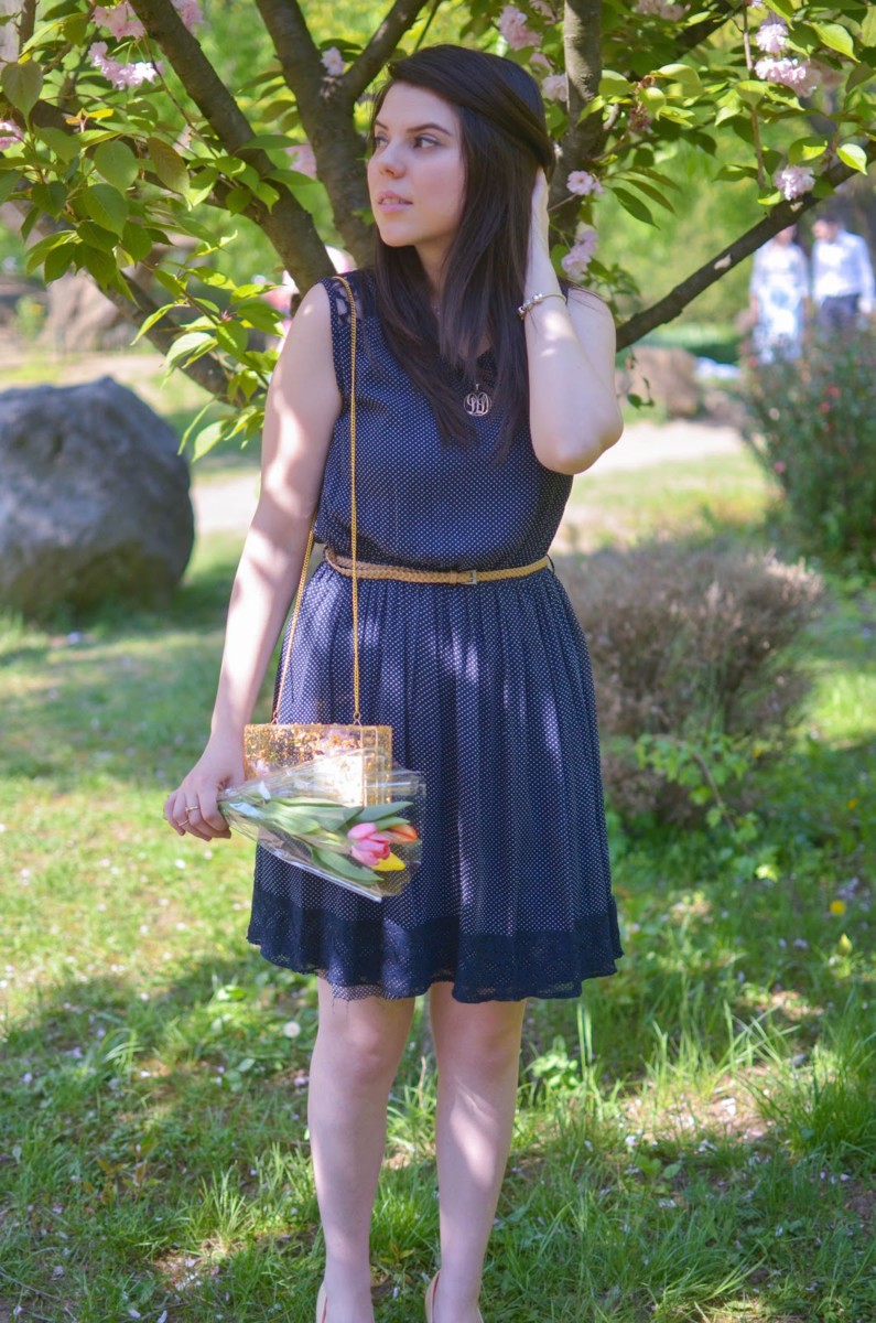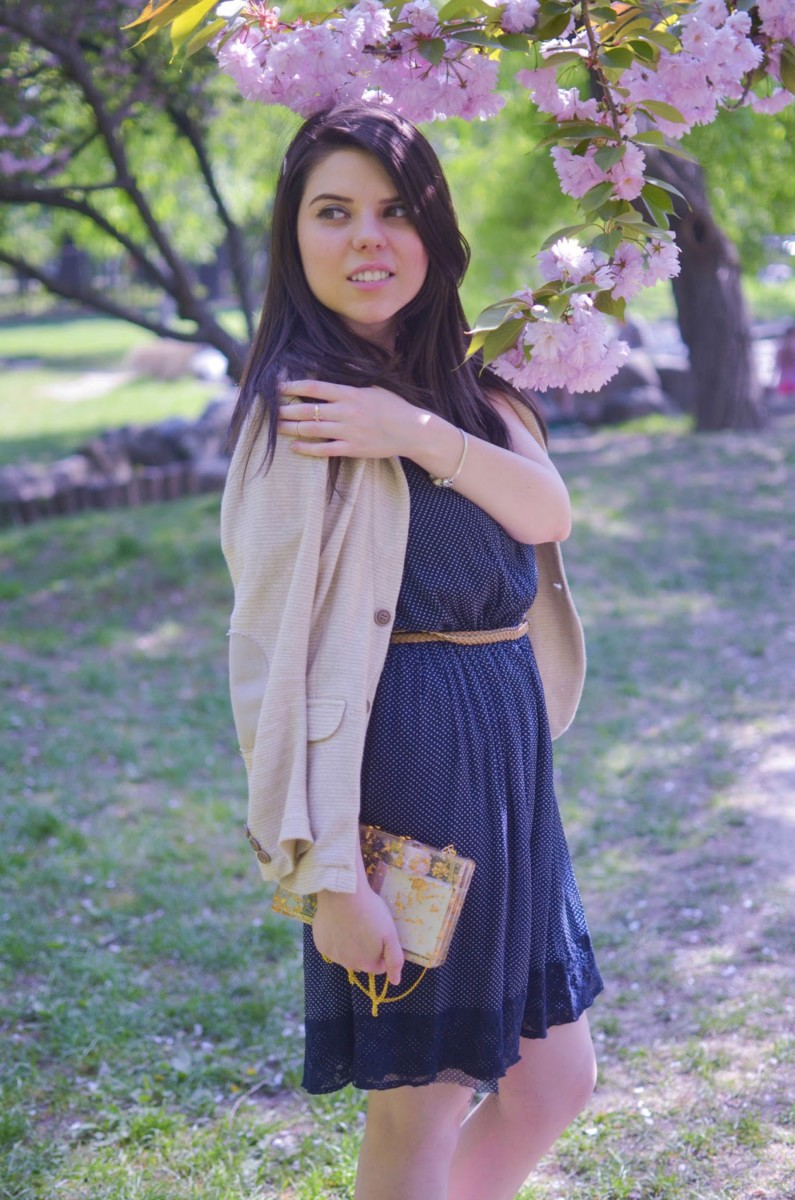 Probabil aveti o senzatie de deja-vu cand o sa va uitati pe fotografiile din aceasta postare. Asta pentru ca ati vazut deja decorul de vis, cu flori roz de cires si in postarea Cristinei de acum cateva zile. Bineinteles ca nu m-am putut abtine sa nu fac si eu poze in Gradina Japoneza pentru ca peisajul era perfect. Si inca un lucru in comun cu postarea Cristinei-clutch-ul MNO.logie, dar varianta pe auriu. Ador acest clutch, e cel mai elegant si deosebit pe care il detin si e si personalizat cu numele meu, nici nu as putea cere mai mult.
