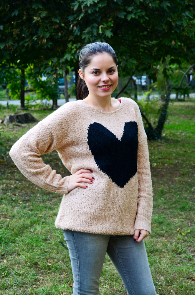Imi place la nebunie imprimeul cu inima, mereu mi-am dorit un pulover sau o bluza cu un astfel de imprimeu.