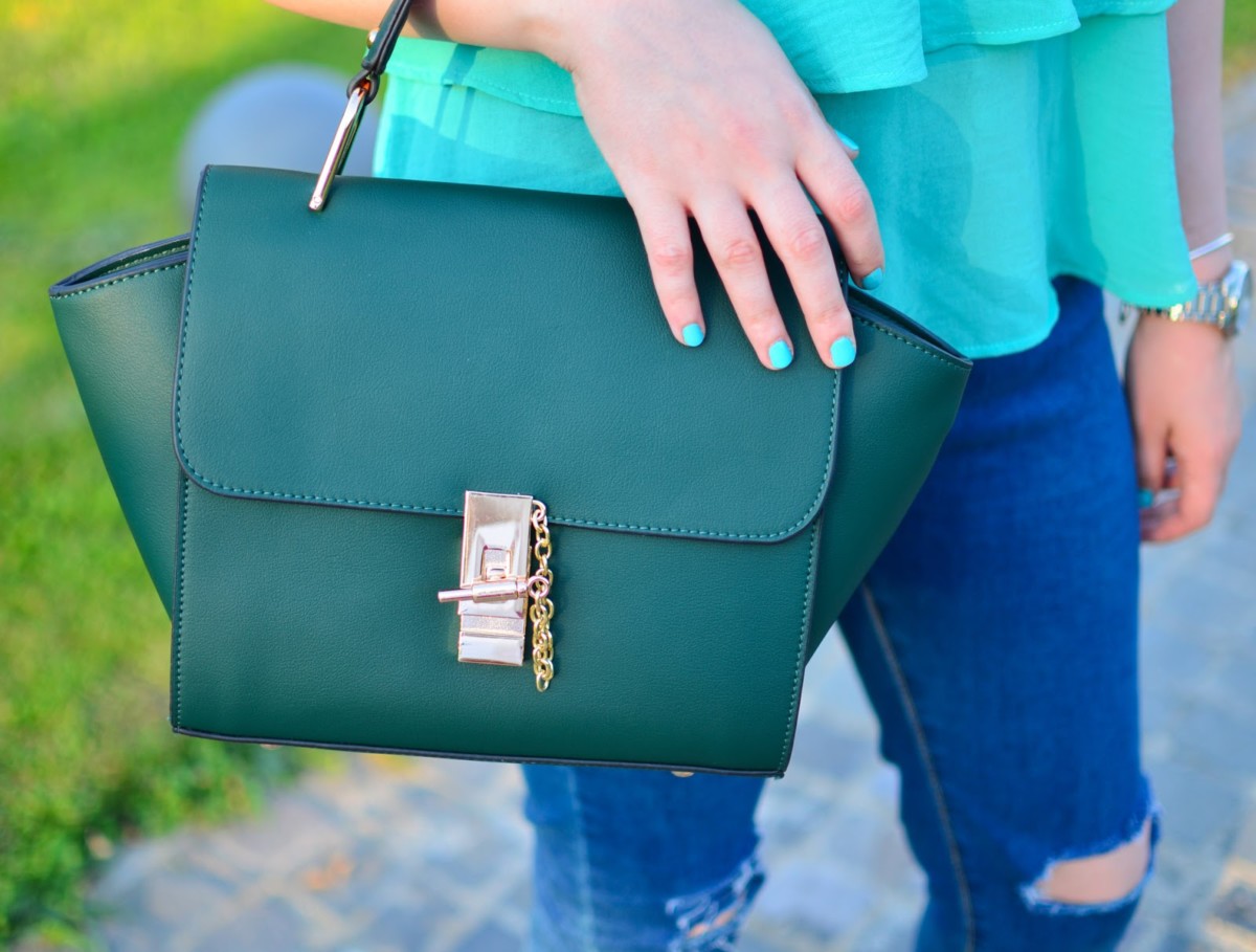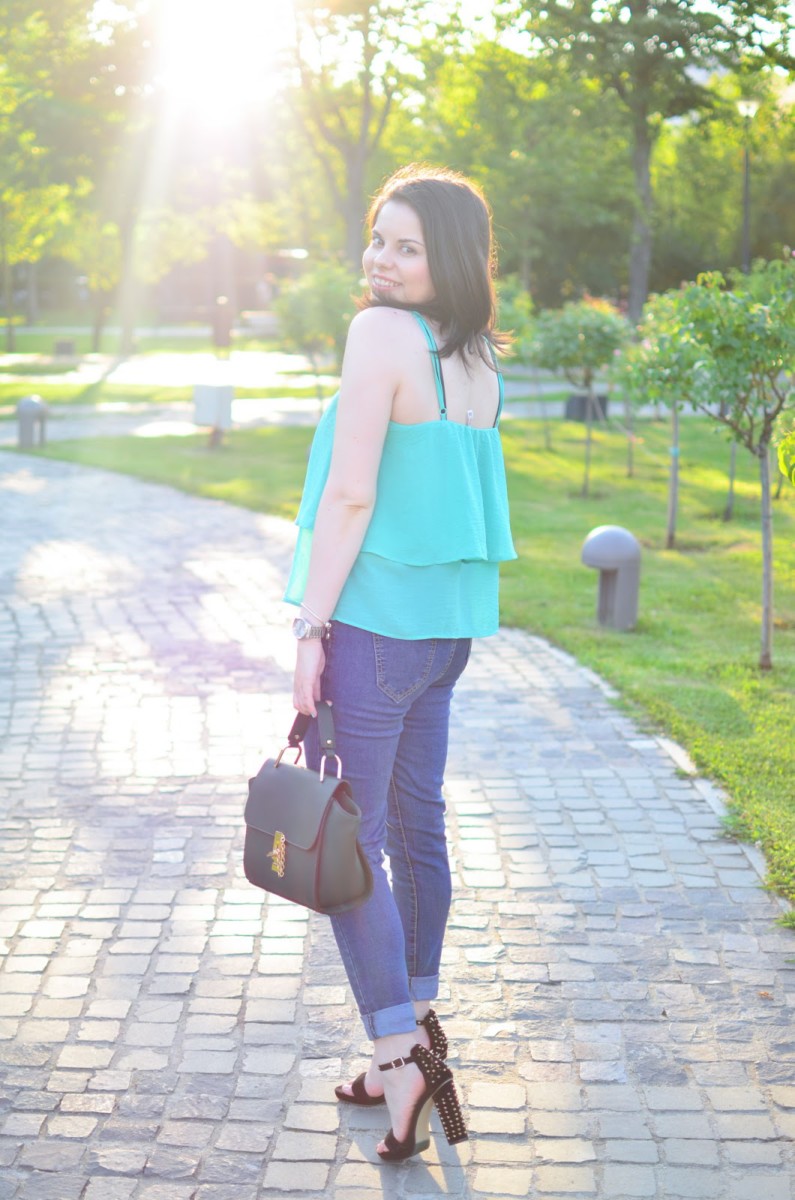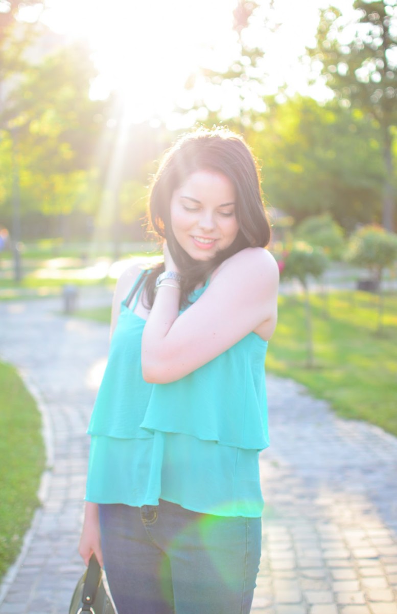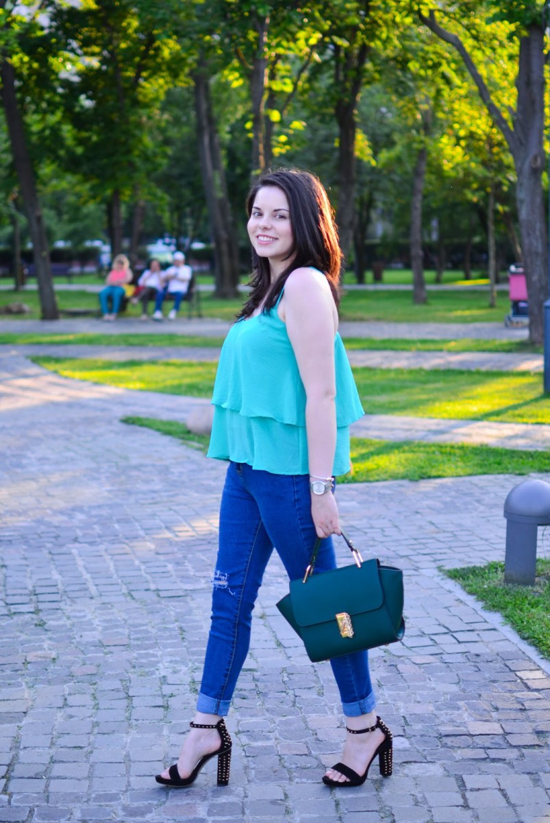 I chose a simple outfit, but chic and I felt super comfy and happy in it. During summer, I really love all the colors, but I don’t really get to wear all of them them as much as I would like. This is the case with green and therefore I took some measures and I ordered a top and a bag in this shade. I