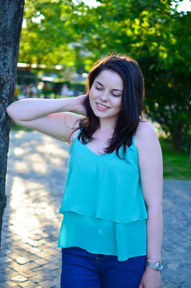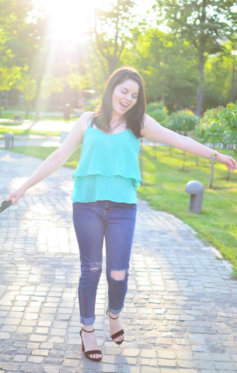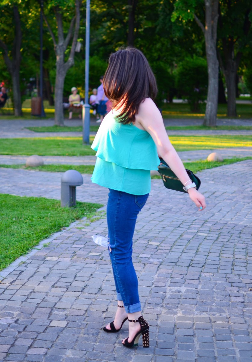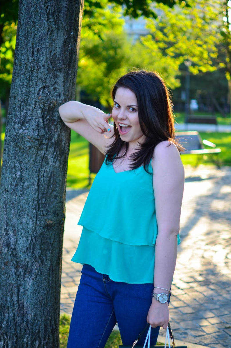 I chose a simple outfit, but chic and I felt super comfy and happy in it. During summer, I really love all the colors, but I don’t really get to wear all of them them as much as I would like. This is the case with green and therefore I took some measures and I ordered a top and a bag in this shade. I