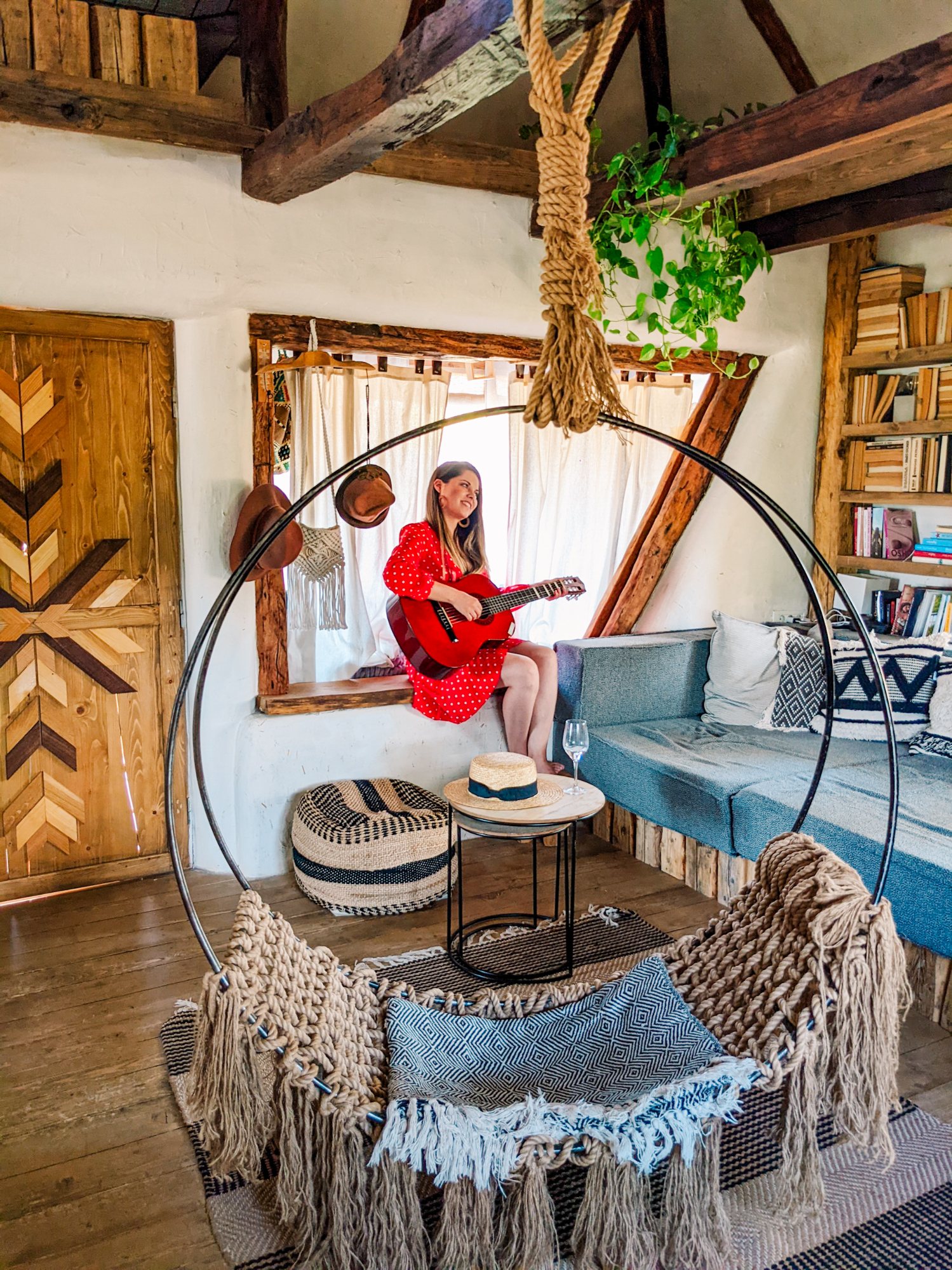 Realizata in stil boho si traditional, casuta are doua nivele si poate adaposti pana la 5 persoane. Se inchiriaza integral, pentru minimum doua nopți, prin Airbnb sau Booking.